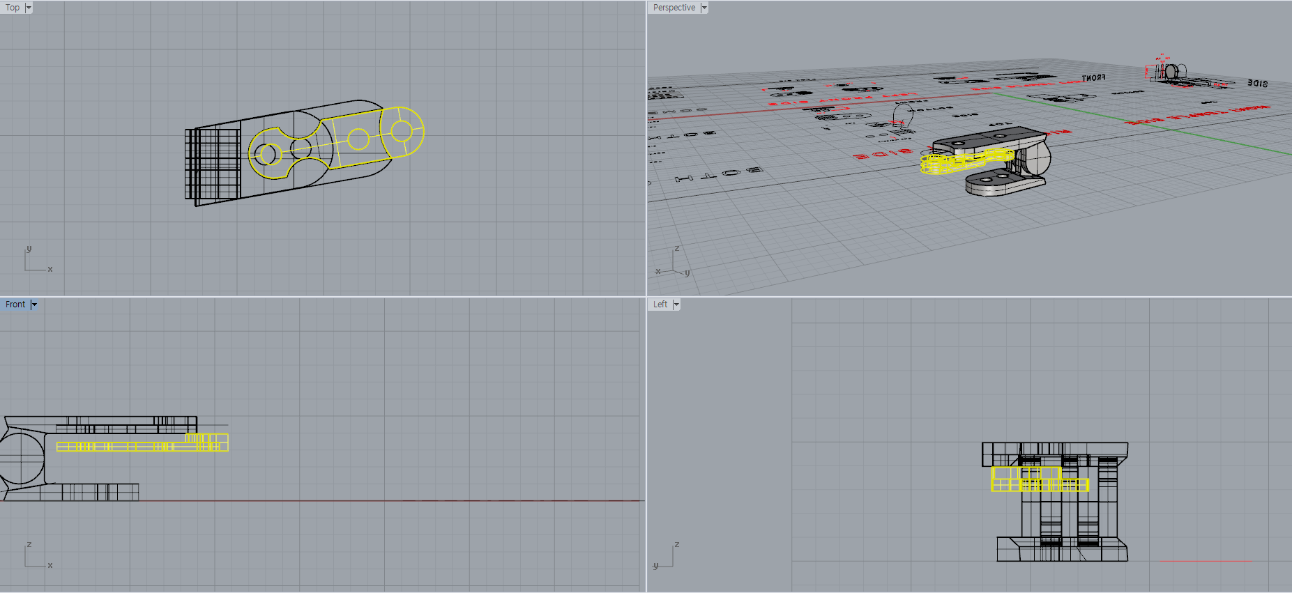 여기서 수제나 소량생산, 고가 제품에서만 나올 수 있는 분리된 미미 부속에 대해 볼 수 있다. 저 라이노 도면의 노란 부분이 해당된다. 저건 템플의 방식에 따라 교체가 가능한 우리만의 시그니처가 될 예정이다. 대량생산이라면 절대 해주지 않을, 무의미한 방식이지만 우린 부속을 하나씩 만들고 다듬어서 안경 하나씩에 직접 쓰기 때문에 가능한 일이다. 나사 기리 까지 직접 따는 일은 여간 번거로운 일이 아닐 수 없다.