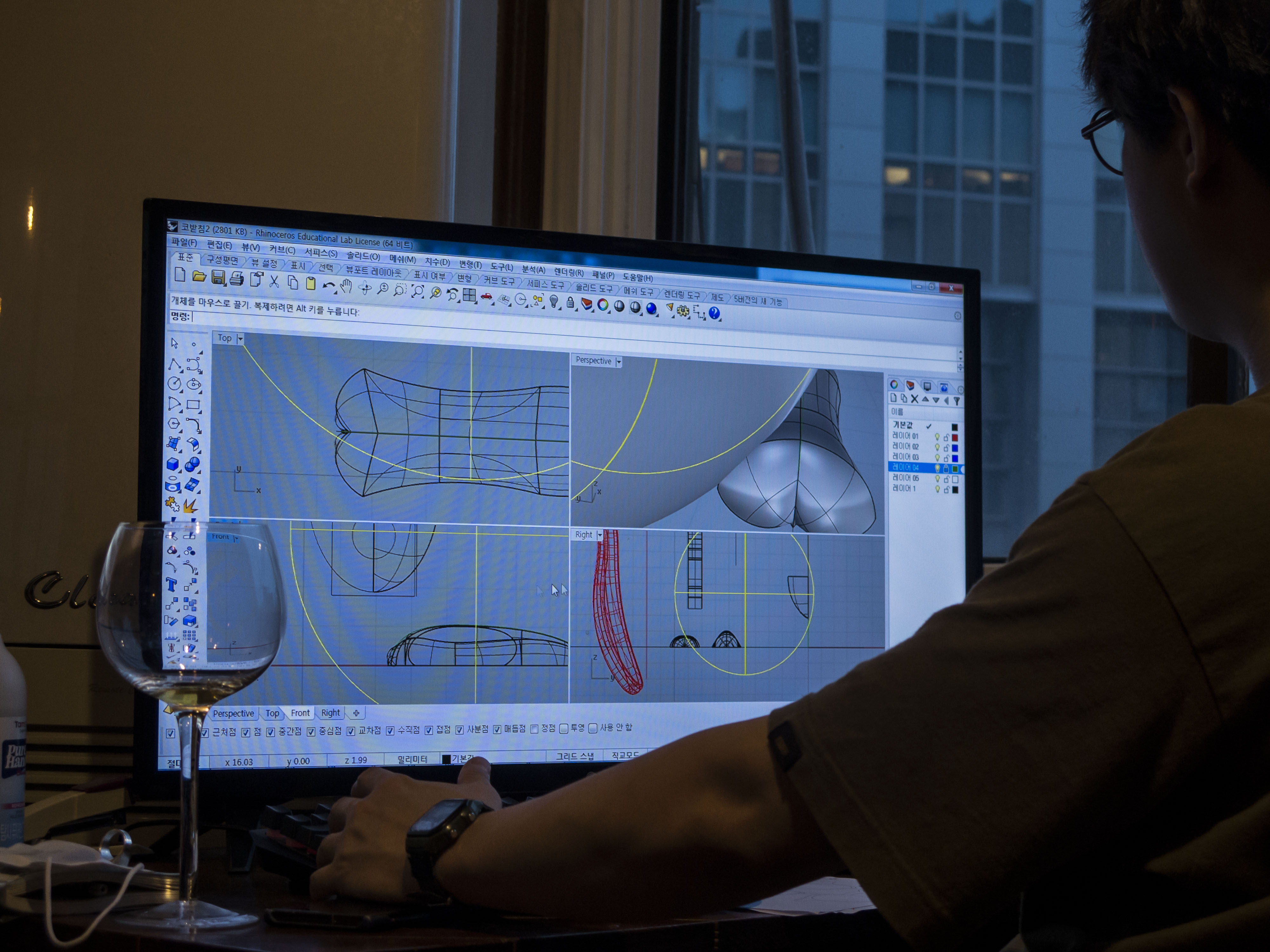 기복이는 우리 제품에 쓸 코받침과 리벳을 모델링하고 있다. 얼굴 각에 맞는 형태들과 구조 사이즈를 평면도로 그리고 말해줬고, 이를 형태 화하는 건 그가 전문이다. 직접 그리면서 감을 잡으니 추후에 본인이 하고 싶은 모양을 만드는데 도움이 될 것이다. 요즘은 직접 그린 프레임과 부속을 컨펌해달라고 주고받는다. 습득이 빠르다.