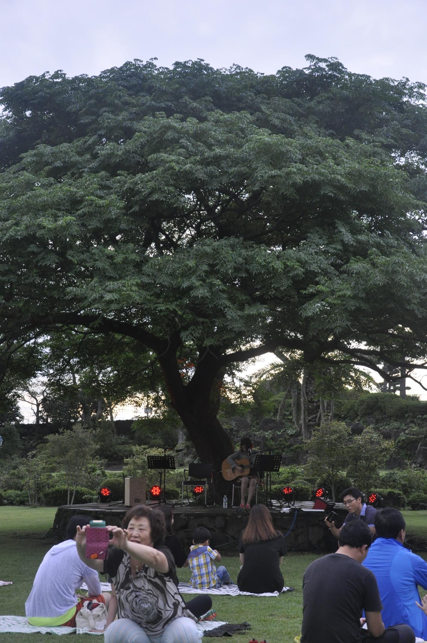 오전에는 집에서 쉬고 다들 리허설을 하러 나갔다. 야외 사운드인지라 소리를 잡는데 전문 엔지니어가 필요했고 내 기억에 꽤 많은 비용을 지불한 것으로 알고 있다. 이 날은 비가 온다는 소식 때문에 카멜리아 힐에 사람들이 썩 오지 않았다. 여긴 원래 동백이 유명한 곳이라 겨울이 히트인데 여름에 사람들을 더 모을 콘텐츠를 개발 중이라 했다. 맥주도 마시고 도시락 먹으면서 야외에서 음악을 즐기는 페스티벌 시즌을 만들고 싶었던 차에 우리가 당첨되었던 것이다.